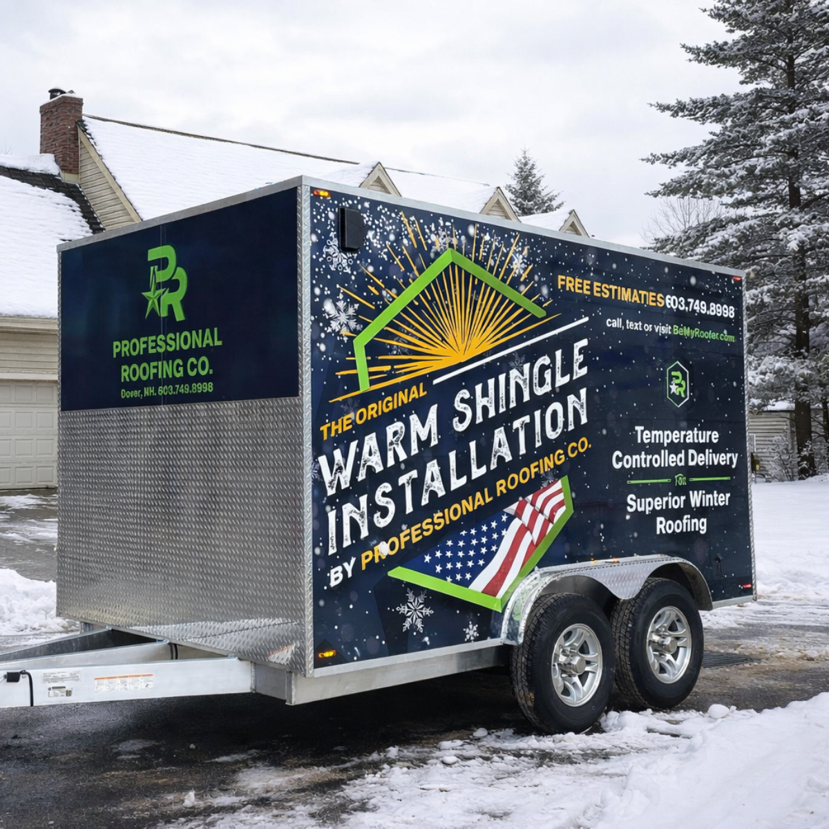 As the only seacoast roofers able to provide temperature-controlled shingle delivery, we’re equipped to roof all year-round! Meet the Warm Shingle Trailer and get your roof taken care of when you need it.